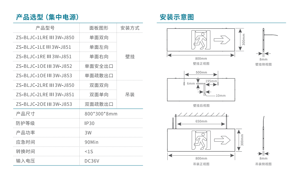 800大型款-單面安口消防應(yīng)急標(biāo)志燈 | ZS-BLJC-1OE Ⅲ 3W-J852 | 壁掛