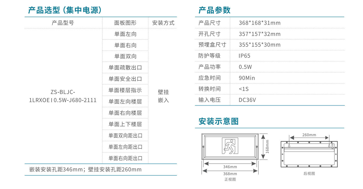 防水款-消防應急標志燈 | ZS-BLJC-1LRXOEⅠ0.5W-J680-2111 | 壁掛、嵌入(圖形可定制)