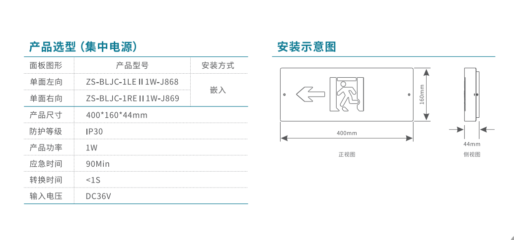軌道交通-弧形款-單面左向應(yīng)急標(biāo)志燈 | ZS-BLJC-1REⅡ1W-J869 | 嵌入